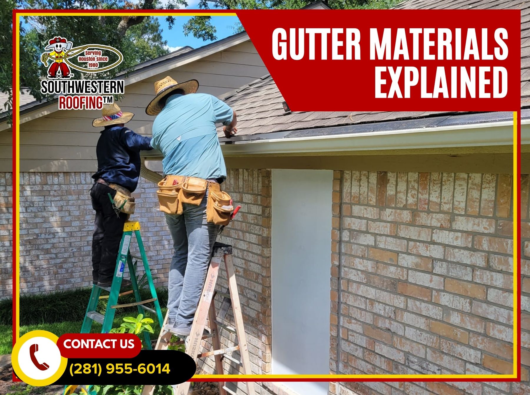 At Southwestern Roofing, we guide homeowners in choosing the ideal gutter material based on durability, climate, and aesthetic goals. Our team installs high-quality systems designed to protect your home and enhance its value. Contact us today at (281) 688-1415 or fill out our GET A FREE QUOTE form to schedule your professional gutter installation.