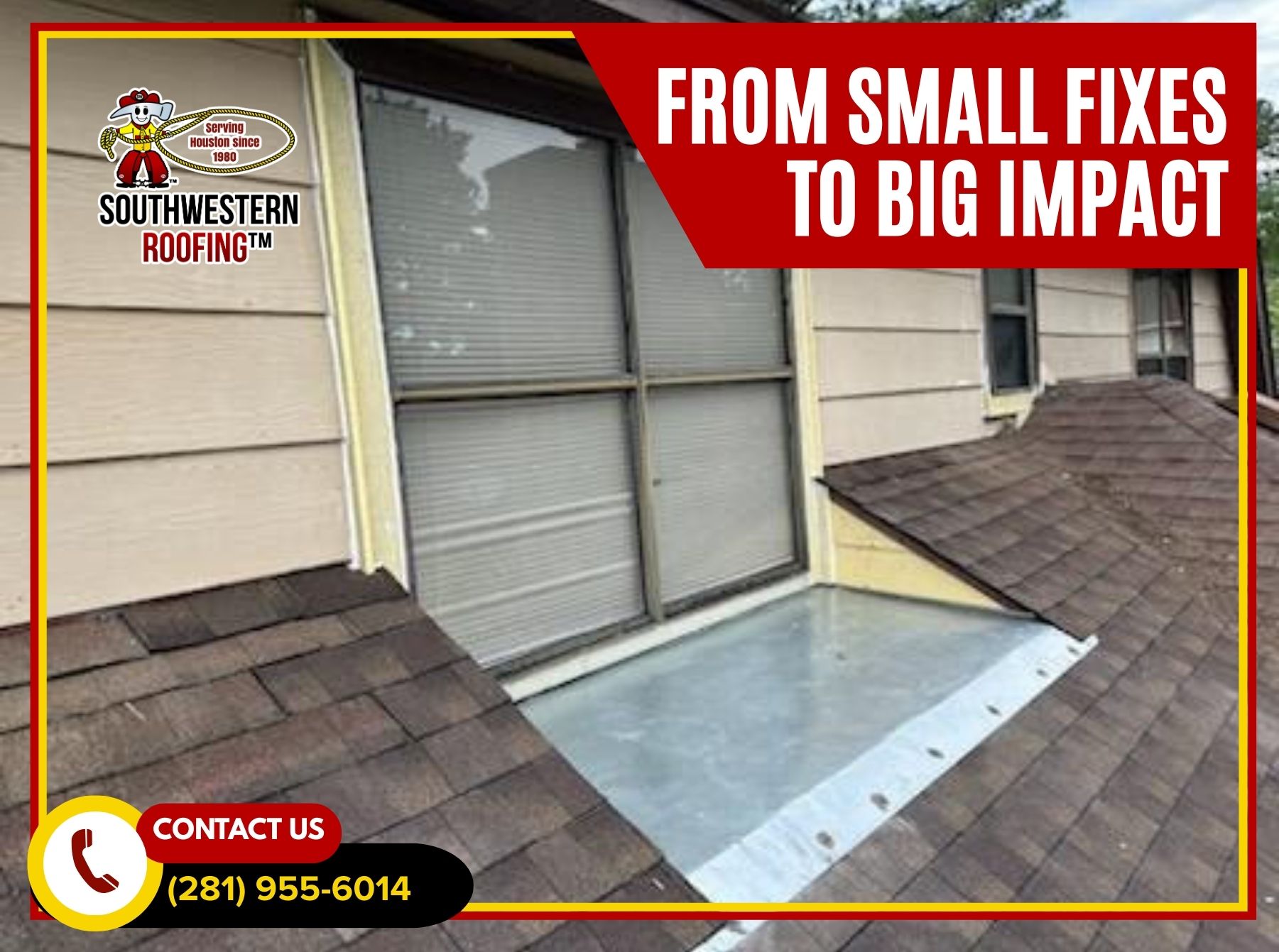 Ensure your doors and windows are safe, functional, and visually appealing. Contact Southwestern Roofing today at (281) 955-6014 to schedule a professional inspection and repair service. Our expert team provides reliable solutions tailored to your home’s specific needs, helping you maintain security, energy efficiency, and aesthetic appeal throughout the year.