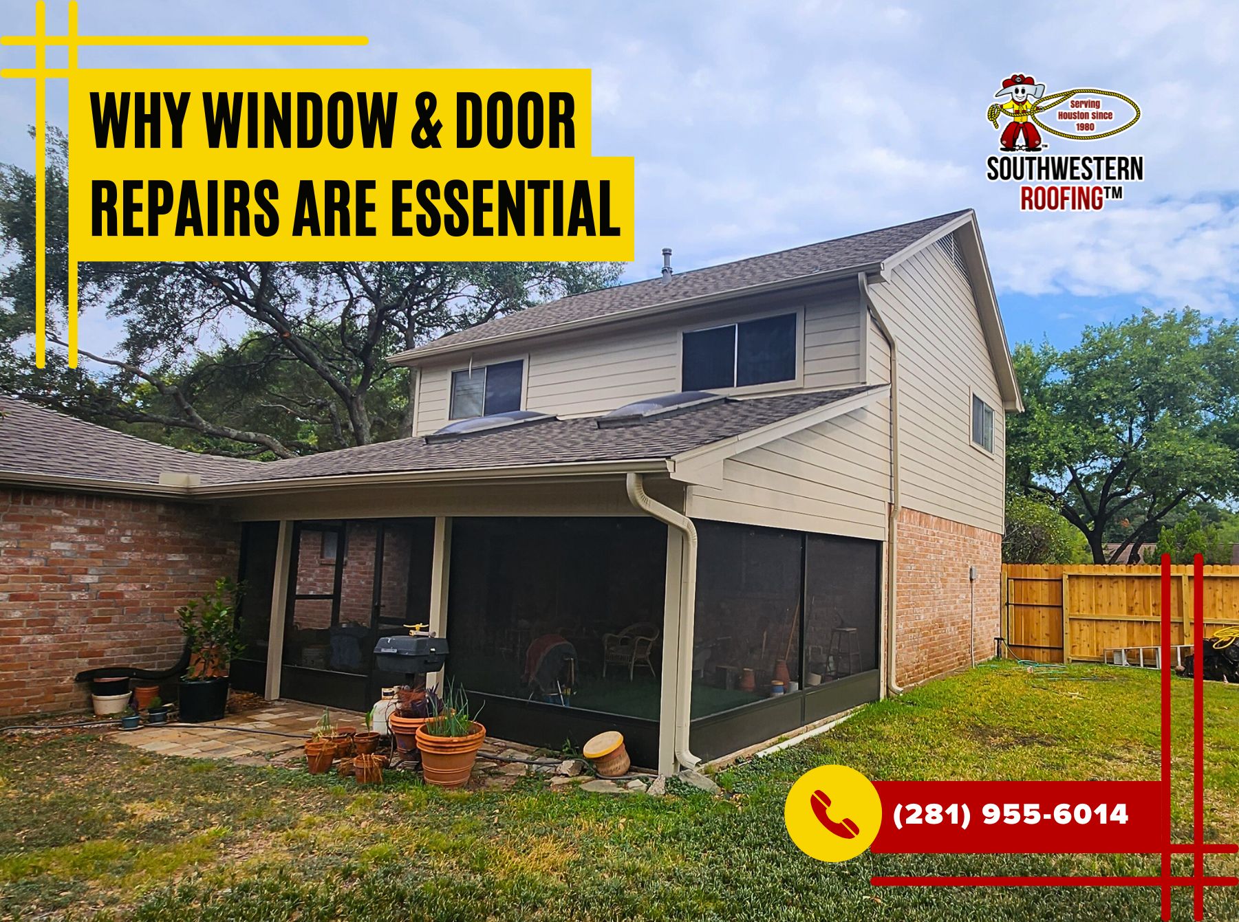 At Southwestern Roofing, we understand the importance of maintaining strong, energy-efficient, and secure entry points for your home. Our team provides professional repair and replacement services for windows and doors that enhance your property’s performance and appearance. Let us help you improve your home from the inside out. Call us today at (281) 955-6014 to schedule your inspection or repair service. Your home deserves the best in protection, efficiency, and comfort—let’s make it happen together.